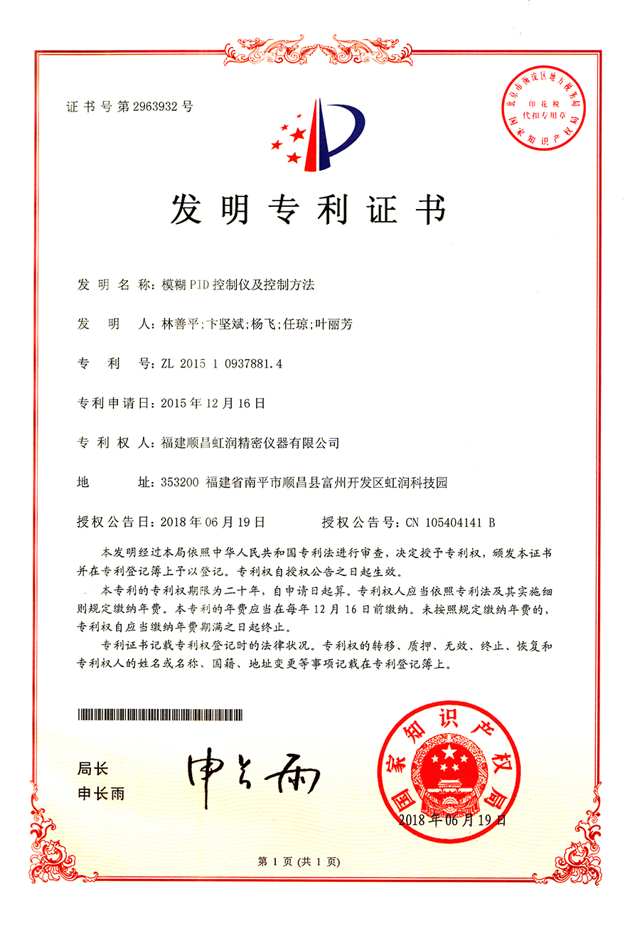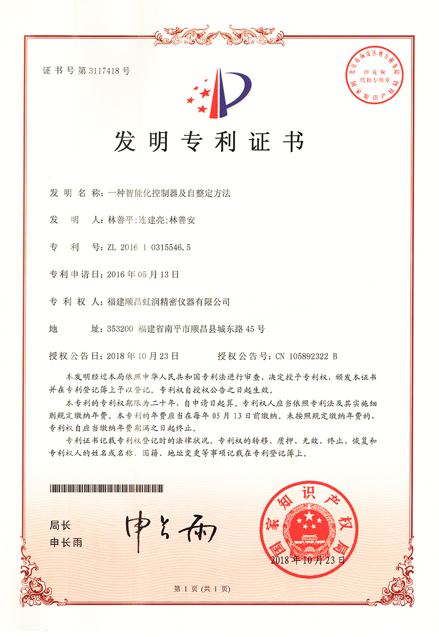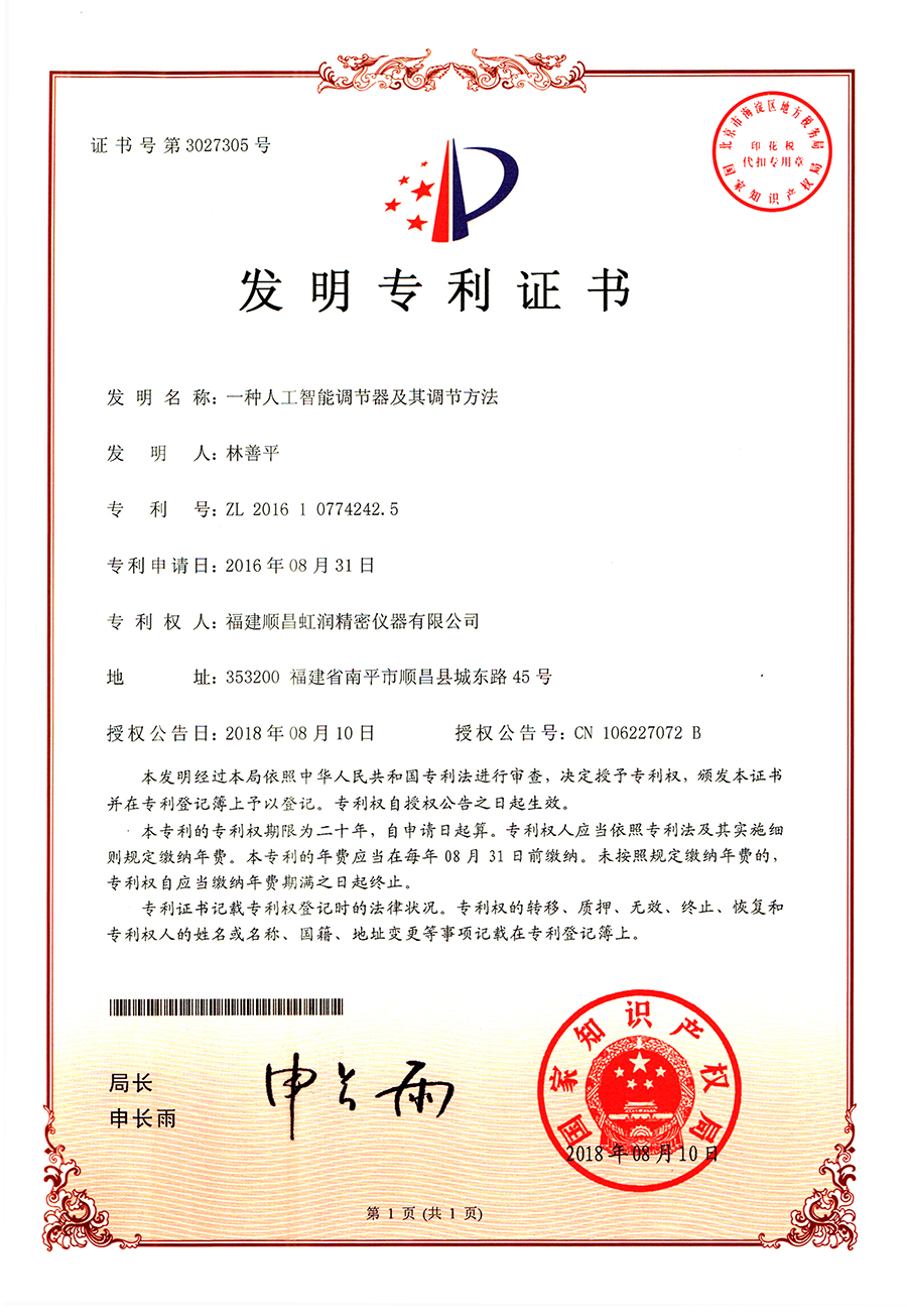 虹潤于2015年推出人工智能算法的溫控器。經(jīng)過長時間現(xiàn)場使用,溫控器無需人工整定參數(shù),無超調(diào)、欠調(diào),控溫精度高,基本達(dá)±0.1℃,得到用戶一致好評??刂扑惴ǐ@4項(xiàng)發(fā)明專利,主持起草2項(xiàng)國家標(biāo)準(zhǔn),獲得6項(xiàng)軟件著作權(quán)。