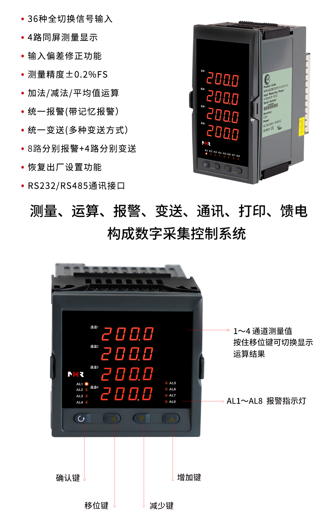 虹潤公司是專業(yè)生產(chǎn)多路溫度巡檢儀的國家專精特新“小巨人”企業(yè),生產(chǎn)的四回路測量顯示控制儀,具有四路同屏顯示,全切換信號輸入,數(shù)學運算功能,多種輸出類型,RS485/RS232通訊等特點。產(chǎn)品獲得巡回檢測顯示方法及裝置、儀表殼體等2項國家發(fā)明專利,主持起草工業(yè)過程控制系統(tǒng)用模擬輸入兩位或多位輸出儀表、物聯(lián)網(wǎng)智能溫度儀表通用技術(shù)條件等2項國家標準,以及通信系統(tǒng)多通道數(shù)據(jù)采集控制終端規(guī)范軍用標準,參與國際5G標準制定,取得四回路測量顯示控制儀等3項相關(guān)軟件著作權(quán)。產(chǎn)品廣泛應用于電力、石化、冶金、制藥、水處理、機械配套等各種工業(yè)現(xiàn)場。