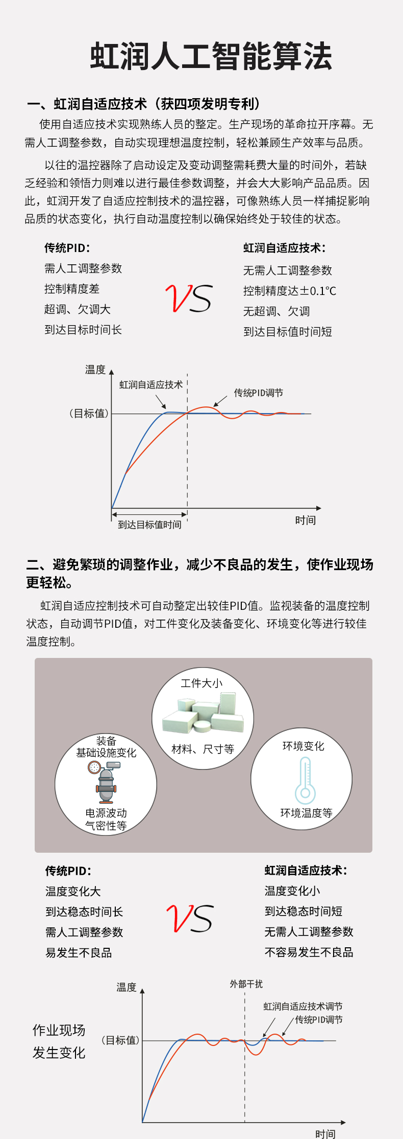 虹潤公司是專業(yè)生產(chǎn)無紙記錄儀的國家專精特新“小巨人”企業(yè)。生產(chǎn)的觸摸屏調(diào)節(jié)無紙記錄儀,具有觸摸大屏顯示,真正人工智能算式,無需人工整定參數(shù),控制精度達士0.1°C,數(shù)據(jù)記錄與轉存, RS485/以太網(wǎng)通訊,5/7/9英寸可選等特點。產(chǎn)品獲得智能化控制器、人工智能調(diào)節(jié)器及調(diào)節(jié)方法、模糊PID控制儀及控制方法、平板無紙記錄儀、巡回檢測顯示方法及裝置等5項國家發(fā)明專利,主持起草物聯(lián)網(wǎng)智能記錄儀表通用技術條件、物聯(lián)網(wǎng)智能溫度儀表通用技術條件、工業(yè)過程測量和控制系統(tǒng)用智能調(diào)節(jié)器等3項國家標準,通信系統(tǒng)多通道數(shù)據(jù)采集控制終端規(guī)范軍用標準,以及空間數(shù)據(jù)與信息數(shù)據(jù)傳輸系統(tǒng)等2項航天標準,參與國際5G標準制定,取得觸摸屏彩色調(diào)節(jié)無紙記錄儀等3項相關軟件著作權。產(chǎn)品廣泛應用于電力、石化、冶金、化工、食品、制藥、熱處理、水處理、機械配套等諸多領域。