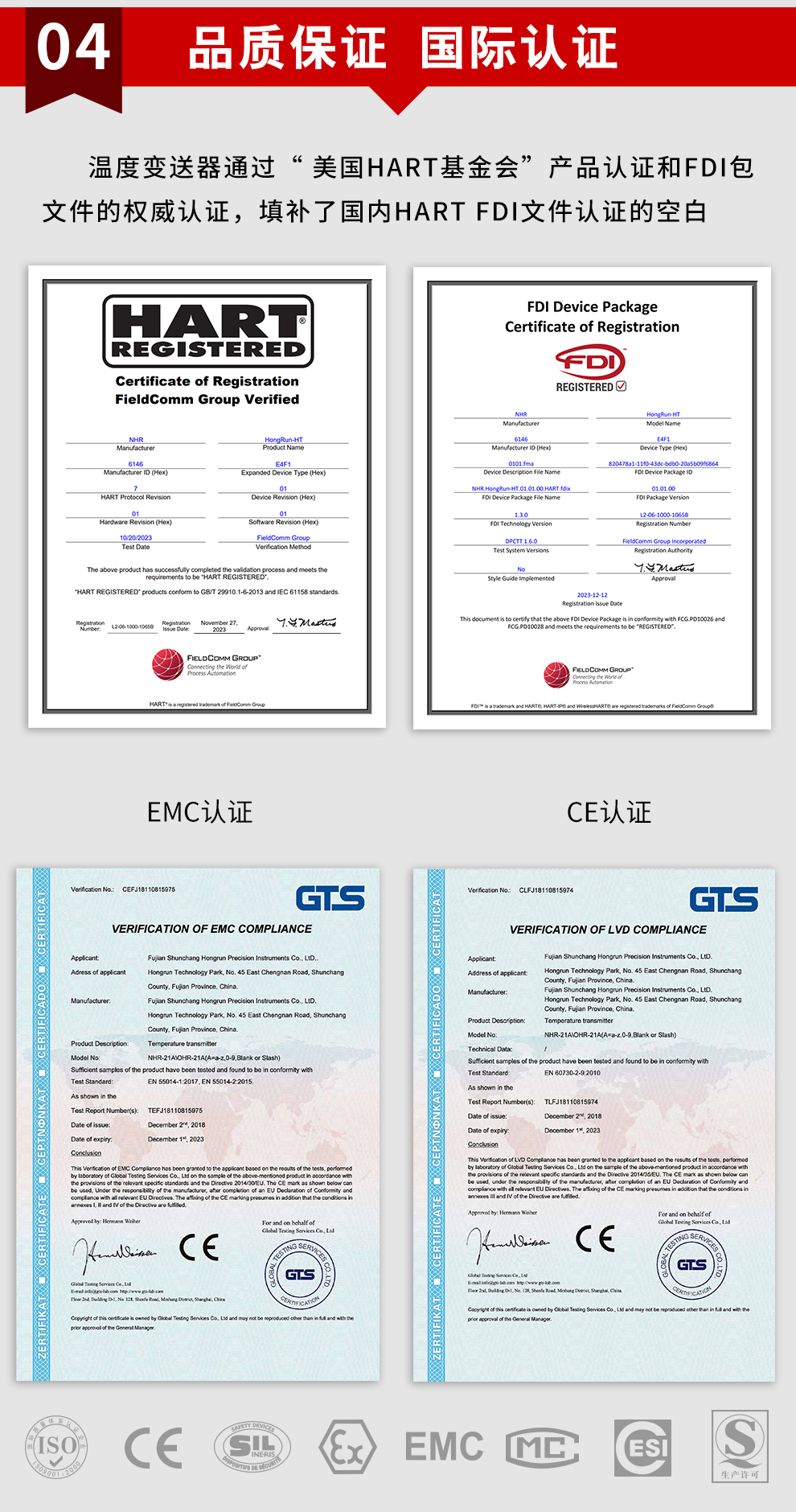 虹潤公司是專業(yè)生產(chǎn)溫度變送器的國家專精特新“小巨人”企業(yè)。生產(chǎn)的現(xiàn)場顯示隔離溫度變送器,具有可修改輸入信號(hào)類型,測量精度高,穩(wěn)定性好,帶HART或RS485通訊計(jì)等特點(diǎn)。該產(chǎn)品不僅通過德國萊茵 CE 認(rèn)證與 SIL 功能安全認(rèn)證,還獲得具備減震抗干擾能力的溫度變送器、信號(hào)隔離器、一種二端子模塊、無源信號(hào)隔離器等3項(xiàng)國家發(fā)明專利。主持起草物聯(lián)網(wǎng)智能溫度儀表、現(xiàn)場設(shè)備工具(FDT)接口規(guī)范、工業(yè)過程測量和控制系統(tǒng)用溫度變送器等3項(xiàng)國家標(biāo)準(zhǔn),以及通信系統(tǒng)多通道數(shù)據(jù)采集控制終端規(guī)范軍用標(biāo)準(zhǔn)。參與國際5G標(biāo)準(zhǔn)制定,取得高精度溫度變送器等3項(xiàng)相關(guān)軟件著作權(quán)。產(chǎn)品廣泛應(yīng)用于石油、化工、電力、冶金、制藥、食品、水處理等各種工業(yè)領(lǐng)域。