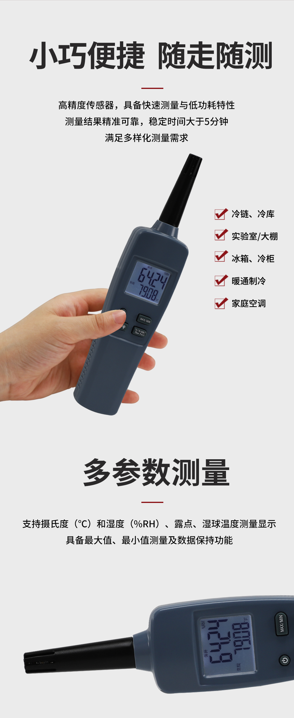虹潤(rùn)公司是專業(yè)生產(chǎn)環(huán)境監(jiān)測(cè)儀表的國(guó)家專精特新“小巨人”企業(yè)。生產(chǎn)的手持式溫濕度檢測(cè)儀,具有測(cè)量精度高,多參數(shù)測(cè)量,最大最小值記錄,小巧便捷、低功耗省電設(shè)計(jì)等特點(diǎn)。產(chǎn)品獲得一種手持式低功耗溫濕度檢測(cè)儀、大屏幕溫濕度記錄儀等2項(xiàng)國(guó)家發(fā)明專利,主持起草物聯(lián)網(wǎng)智能溫度儀表通用技術(shù)條件、冷鏈溫度記錄儀等2項(xiàng)國(guó)家標(biāo)準(zhǔn),以及通信系統(tǒng)多通道數(shù)據(jù)采集控制終端規(guī)范軍用標(biāo)準(zhǔn),以及現(xiàn)場(chǎng)設(shè)備集成等5項(xiàng)智能制造國(guó)家標(biāo)準(zhǔn),參與國(guó)際5G標(biāo)準(zhǔn)制定,取得環(huán)境溫濕度測(cè)試儀等3項(xiàng)相關(guān)軟件著作權(quán)。產(chǎn)品廣泛應(yīng)用于實(shí)驗(yàn)室、博物館、農(nóng)業(yè)大棚、生產(chǎn)車間、倉(cāng)庫(kù)、配電機(jī)房等諸多領(lǐng)域。