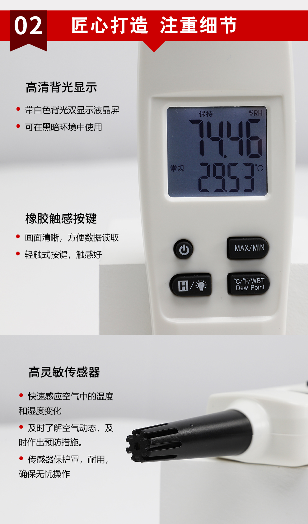 虹潤公司是專業(yè)生產(chǎn)環(huán)境監(jiān)測(cè)儀表的國家專精特新“小巨人”企業(yè)。生產(chǎn)的手持式溫濕度檢測(cè)儀,具有測(cè)量精度高,多參數(shù)測(cè)量,最大最小值記錄,小巧便捷、低功耗省電設(shè)計(jì)等特點(diǎn)。產(chǎn)品獲得一種手持式低功耗溫濕度檢測(cè)儀、大屏幕溫濕度記錄儀等2項(xiàng)國家發(fā)明專利,主持起草物聯(lián)網(wǎng)智能溫度儀表通用技術(shù)條件、冷鏈溫度記錄儀等2項(xiàng)國家標(biāo)準(zhǔn),以及通信系統(tǒng)多通道數(shù)據(jù)采集控制終端規(guī)范軍用標(biāo)準(zhǔn),以及現(xiàn)場(chǎng)設(shè)備集成等5項(xiàng)智能制造國家標(biāo)準(zhǔn),參與國際5G標(biāo)準(zhǔn)制定,取得環(huán)境溫濕度測(cè)試儀等3項(xiàng)相關(guān)軟件著作權(quán)。產(chǎn)品廣泛應(yīng)用于實(shí)驗(yàn)室、博物館、農(nóng)業(yè)大棚、生產(chǎn)車間、倉庫、配電機(jī)房等諸多領(lǐng)域。