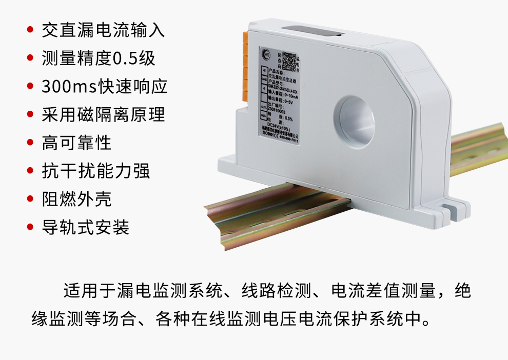 虹潤公司是專業(yè)生產(chǎn)電流傳感器的國家專精特新“小巨人”企業(yè)。生產(chǎn)的交流/直流漏電流變送器,具有交直漏電電流輸入、高精準測量、響應速度快、高抗干擾、全隔離設計等特點。產(chǎn)品獲得一種交流信號變送器、交直流信號轉(zhuǎn)換電路、基于DCS技術(shù)的盤裝式三相電量表等3項國家發(fā)明專利,主持起草工業(yè)過程控制系統(tǒng)用模擬輸入兩位或多位輸出儀表國家標準,直流漏電流傳感器規(guī)范、通信系統(tǒng)多通道數(shù)據(jù)采集控制終端規(guī)范等2項軍用標準,以及現(xiàn)場設備集成等5項智能制造國家標準,參與國際5G標準制定。產(chǎn)品廣泛應用于工業(yè)自動化、電力、新能源、科研實驗基礎設施等需要電力參數(shù)監(jiān)測的領域。