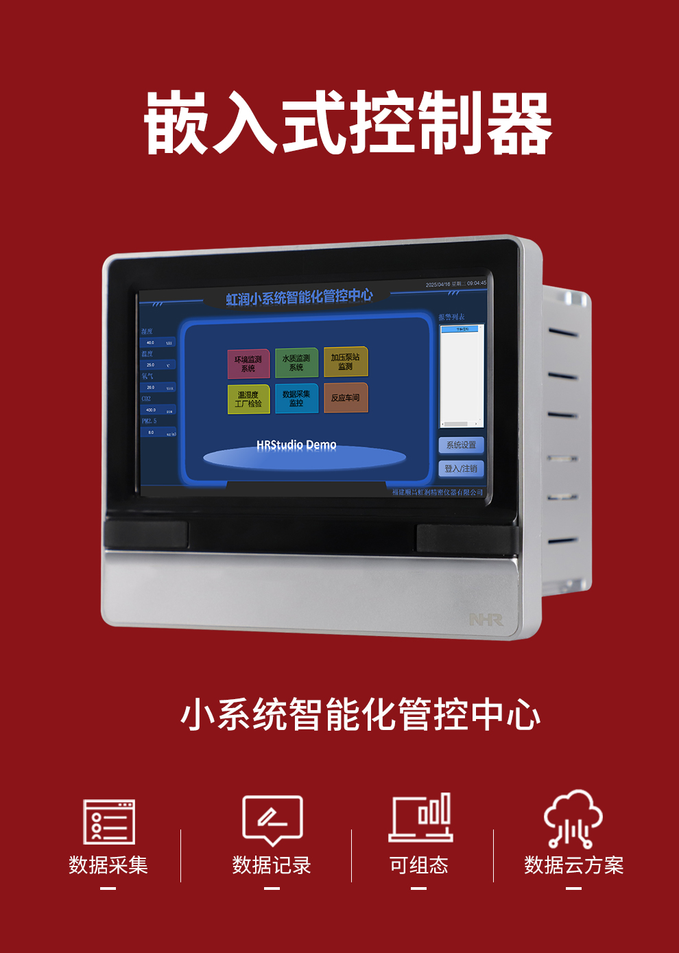 虹潤公司是專業(yè)生產(chǎn)觸摸屏的國家專精特新“小巨人”企業(yè)。生產(chǎn)的嵌入式控制器,具有數(shù)據(jù)采集與記錄,內(nèi)置與外配組態(tài)軟件,數(shù)據(jù)云方案,RS485/以太網(wǎng)通訊等特點(diǎn)。產(chǎn)品獲得嵌入式數(shù)據(jù)采集工作站組網(wǎng)系統(tǒng)、數(shù)據(jù)采集工作站、無紙記錄儀、智能化控制器、巡回檢測(cè)顯示方法及裝置等5項(xiàng)國家發(fā)明專利;主持起草通信系統(tǒng)多通道數(shù)據(jù)采集控制終端規(guī)范軍用標(biāo)準(zhǔn),物聯(lián)網(wǎng)智能記錄儀表通用技術(shù)條件國家標(biāo)準(zhǔn),以及空間數(shù)據(jù)與信息數(shù)據(jù)傳輸系統(tǒng)等2項(xiàng)航天標(biāo)準(zhǔn),參與國際5G標(biāo)準(zhǔn)制定;取得嵌入式數(shù)據(jù)采集控制工作站以及HRStudio畫面組態(tài)軟件等4項(xiàng)相關(guān)軟件著作權(quán)。產(chǎn)品廣泛應(yīng)用于航天航空、化工、冶金、制藥、設(shè)備配套、現(xiàn)代農(nóng)業(yè)、環(huán)境監(jiān)測(cè)等諸多領(lǐng)域。