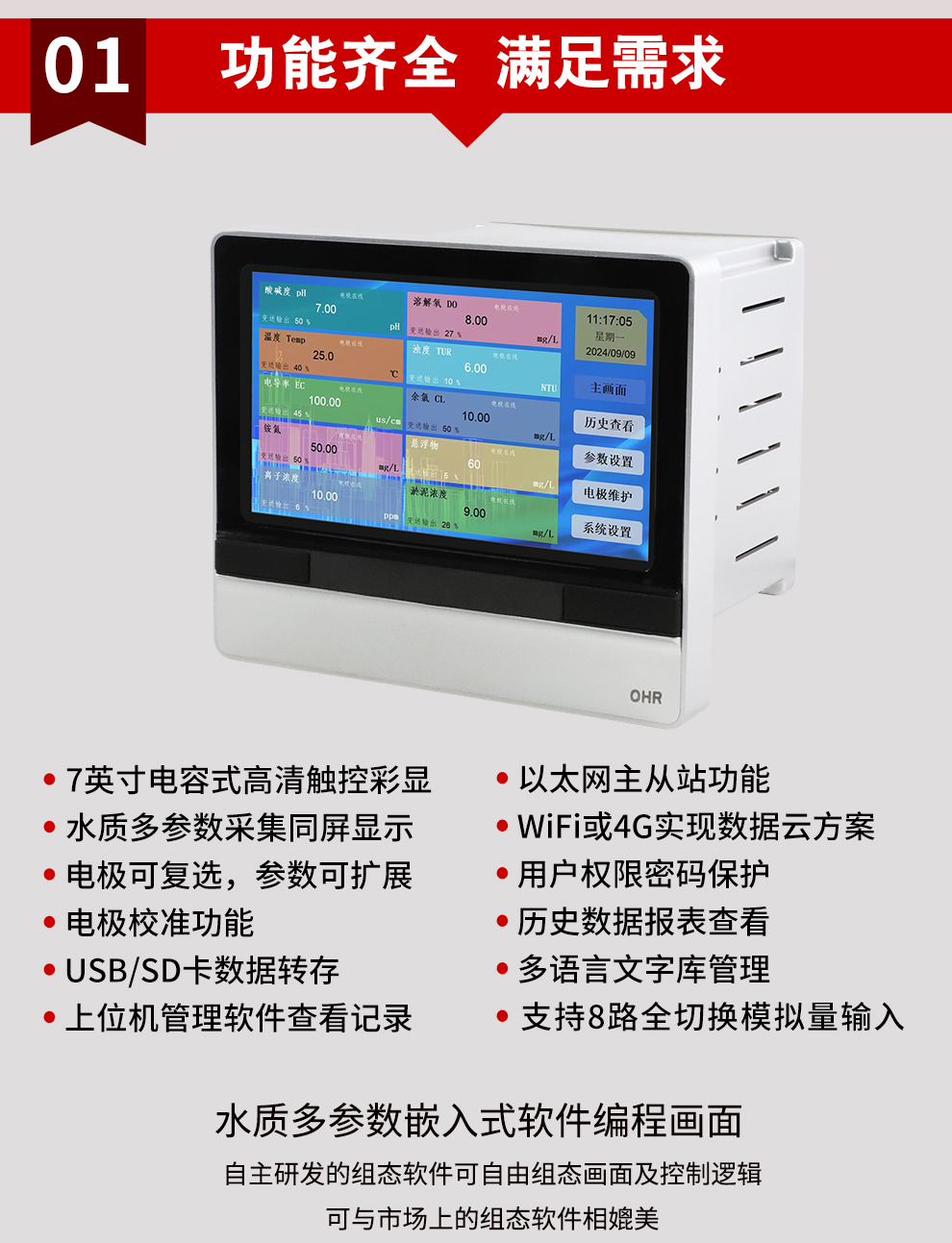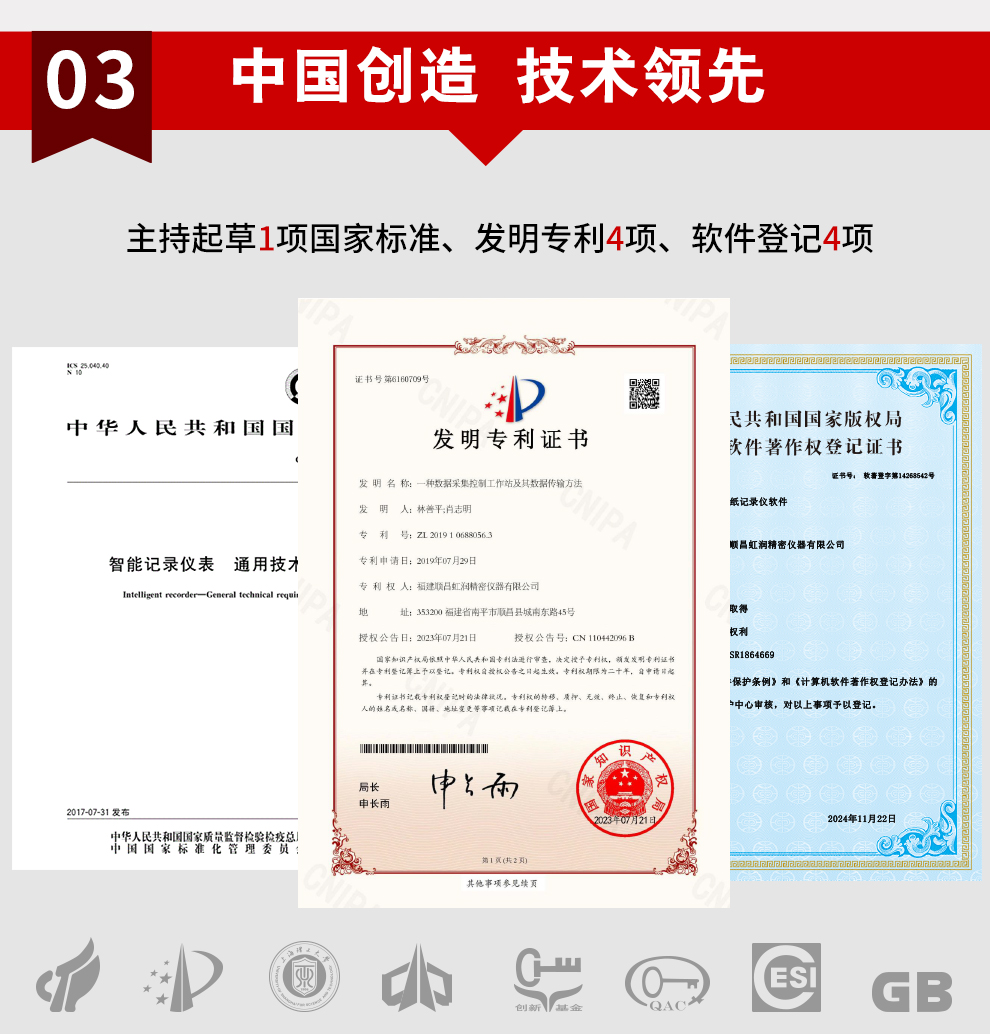 虹潤公司是專業(yè)生產(chǎn)水質(zhì)分析儀的國家專精特新“小巨人”企業(yè)。生產(chǎn)的水質(zhì)多參數(shù)監(jiān)測記錄儀,具有多參數(shù)采集同屏顯示,數(shù)據(jù)記錄與轉(zhuǎn)存,支持WiFi或4G實(shí)現(xiàn)數(shù)據(jù)云方案,內(nèi)置與外配組態(tài)軟件等特點(diǎn)。產(chǎn)品獲得一種適應(yīng)性強(qiáng)PH控制儀、嵌入式數(shù)據(jù)采集工作站、數(shù)據(jù)采集控制工作站、無紙記錄儀、智能化控制器等5項(xiàng)國家發(fā)明專利;主持起草通信系統(tǒng)多通道數(shù)據(jù)采集控制終端規(guī)范軍用標(biāo)準(zhǔn),物聯(lián)網(wǎng)智能記錄儀表通用技術(shù)條件國家標(biāo)準(zhǔn),以及現(xiàn)場設(shè)備集成等5項(xiàng)智能制造國家標(biāo)準(zhǔn),參與國際5G標(biāo)準(zhǔn)制定;取得PH無紙記錄儀等7項(xiàng)相關(guān)軟件著作權(quán)。產(chǎn)品廣泛應(yīng)用于實(shí)驗(yàn)室、水處理、環(huán)境監(jiān)測、食品、制藥、農(nóng)業(yè)、工業(yè)流程控制等諸多領(lǐng)域。