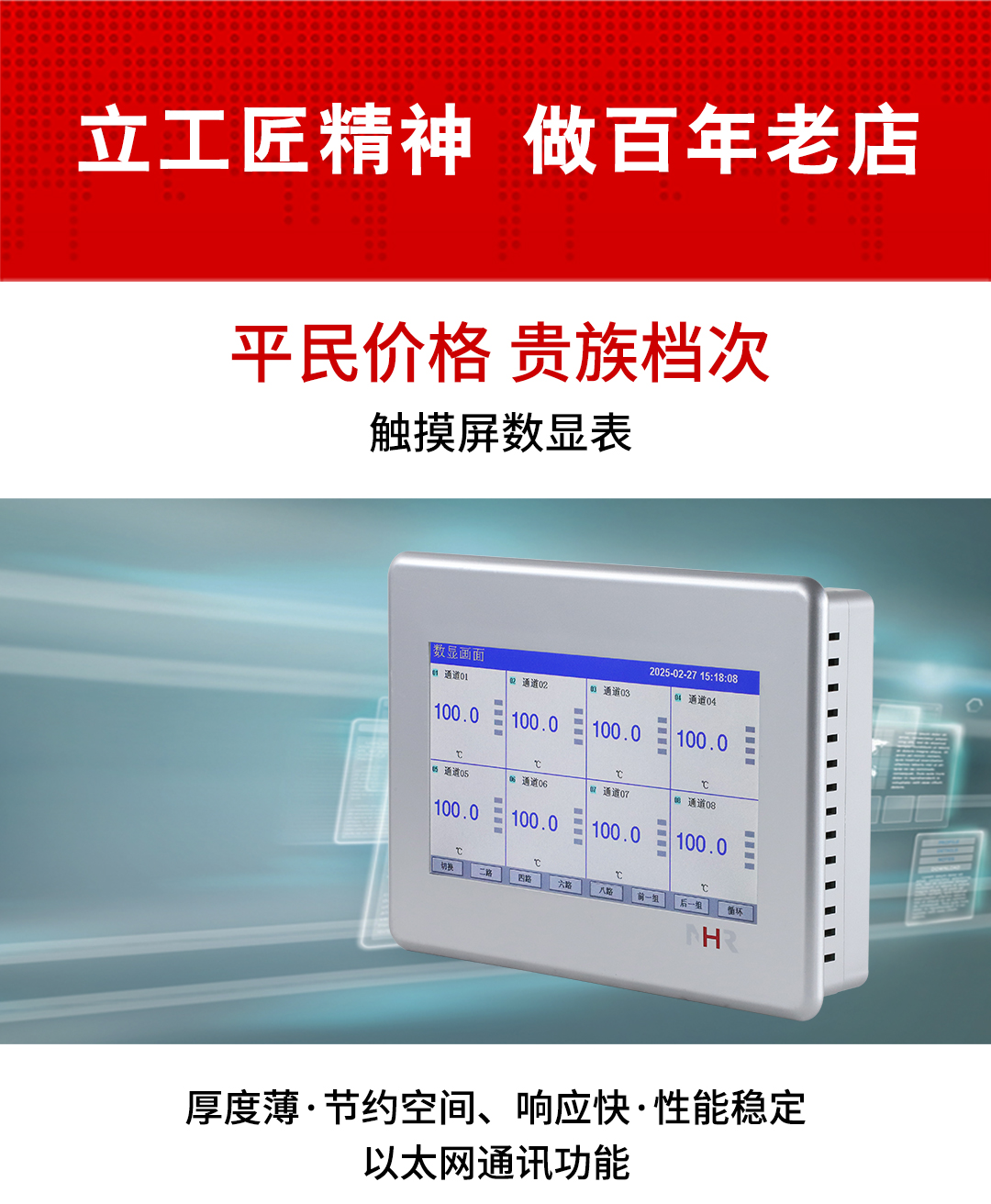 虹潤公司是專業(yè)生產(chǎn)無紙記錄儀的國家專精特新“小巨人”企業(yè)。生產(chǎn)的觸摸屏數(shù)顯表,具有觸摸大屏顯示,多通道全切換輸入,通道間隔離,RS485/以太網(wǎng)通訊,5/7/9英寸可選等特點(diǎn)。產(chǎn)品獲得無紙記錄儀、數(shù)據(jù)采集控制工作站、智能化控制器、巡回檢測顯示方法及裝置等4項(xiàng)國家發(fā)明專利,主持起草物聯(lián)網(wǎng)智能記錄儀表通用技術(shù)條件、物聯(lián)網(wǎng)智能溫度儀表通用技術(shù)條件等2項(xiàng)國家標(biāo)準(zhǔn),通信系統(tǒng)多通道數(shù)據(jù)采集控制終端規(guī)范軍用標(biāo)準(zhǔn),以及空間數(shù)據(jù)與信息數(shù)據(jù)傳輸系統(tǒng)等2項(xiàng)航天標(biāo)準(zhǔn),參與國際5G標(biāo)準(zhǔn)制定,取得觸摸屏彩色無紙記錄儀等4項(xiàng)相關(guān)軟件著作權(quán)。產(chǎn)品廣泛應(yīng)用于冶金、石化、電力、制藥、新能源、現(xiàn)代農(nóng)業(yè)生產(chǎn)過程等諸多領(lǐng)域。