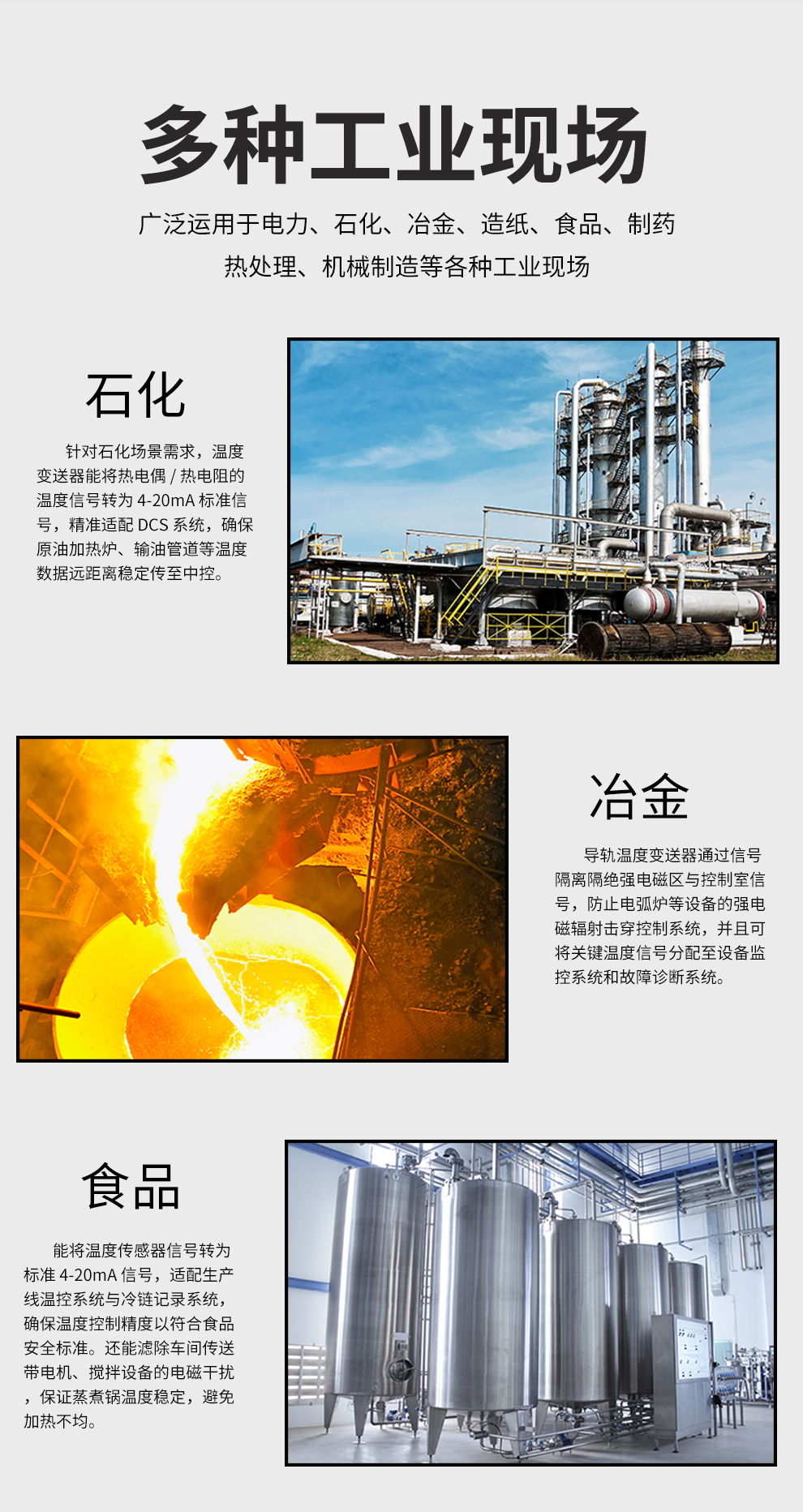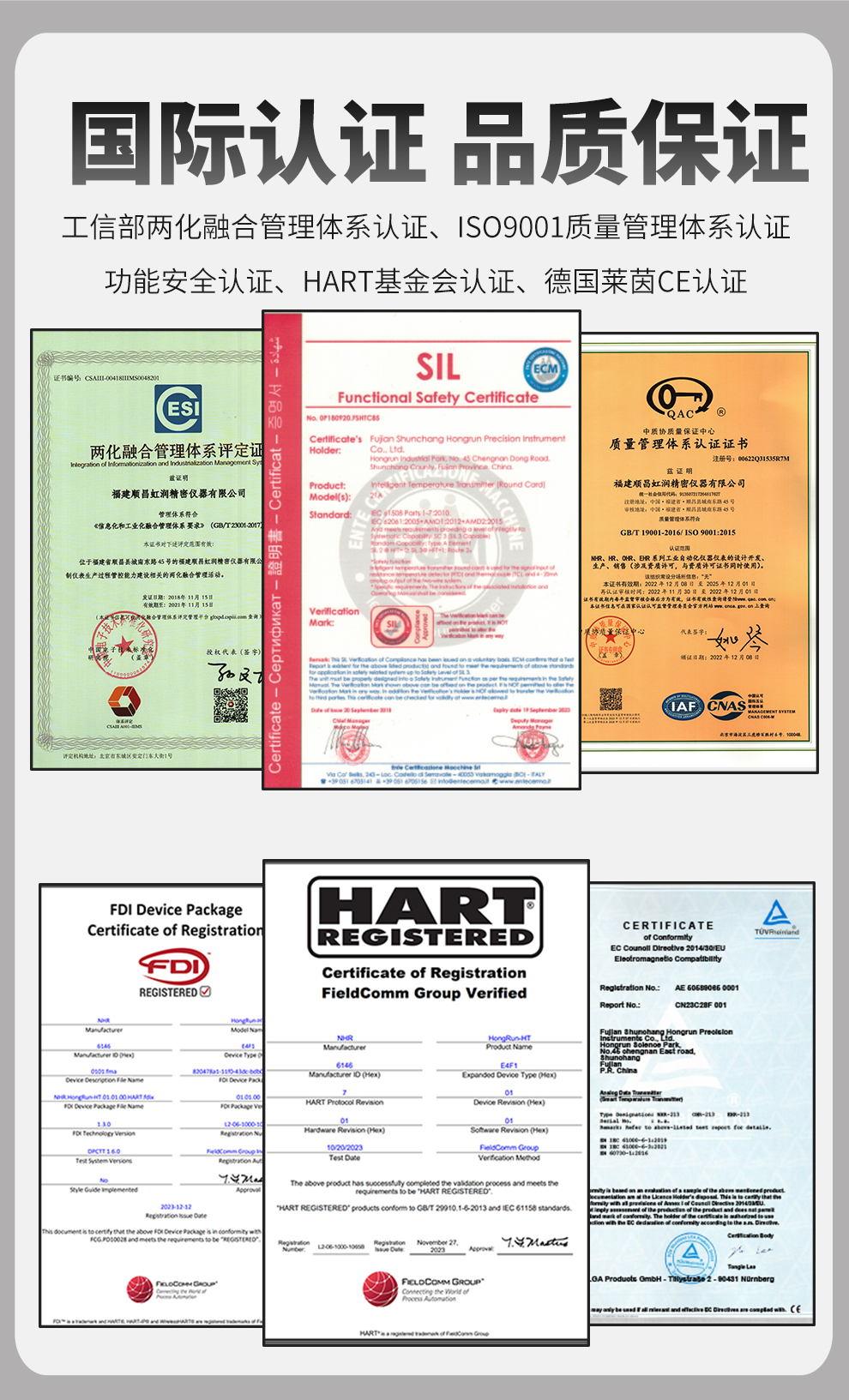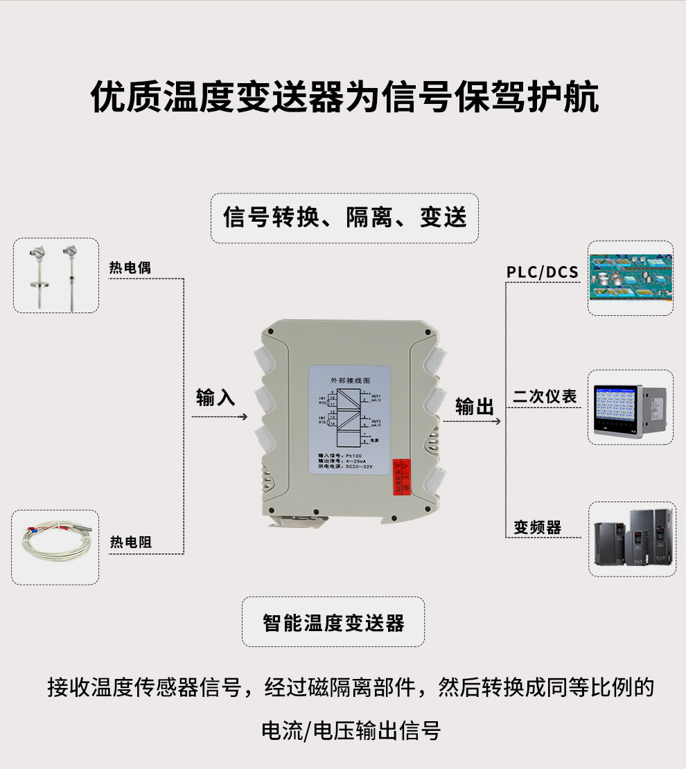 虹潤公司是專業(yè)生產(chǎn)溫度變送器的國家專精特新“小巨人”企業(yè)。生產(chǎn)的溫度變送器,具有采用磁隔離技術(shù),配套編程器可修改參數(shù),抗干擾能力強,穩(wěn)定性好,帶RS485或HART通訊等特點。該產(chǎn)品不僅通過HART基金會認證、德國萊茵 CE 認證與 SIL 功能安全認證,還獲得具備減震抗干擾能力的溫度變送器、信號隔離器、一種二端子模塊、無源信號隔離器等4項國家發(fā)明專利,主持起草物聯(lián)網(wǎng)智能溫度儀表、現(xiàn)場設(shè)備工具(FDT)接口規(guī)范、工業(yè)過程測量和控制系統(tǒng)用溫度變送器等3項國家標準,以及通信系統(tǒng)多通道數(shù)據(jù)采集控制終端規(guī)范軍用標準,參與國際5G標準制定,取得溫度變送器等5項相關(guān)軟件著作權(quán)。產(chǎn)品廣泛應(yīng)用于石油、電力、化工,冶金、制藥、紡織、橡膠制造等工業(yè)領(lǐng)域現(xiàn)場自動化測溫過程。