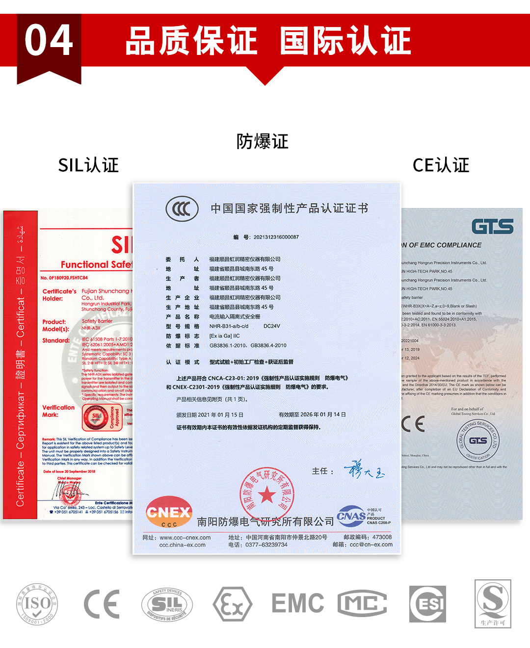 虹潤(rùn)公司是專業(yè)生產(chǎn)隔離器的國(guó)家專精特新“小巨人”企業(yè)。生產(chǎn)的隔離式安全柵涵蓋信號(hào)電流輸入、電壓輸入、熱電阻輸入、熱電偶輸入、頻率輸入、開關(guān)量輸入等多種產(chǎn)品類型。產(chǎn)品獲得具備減震抗干擾能力的溫度變送器、信號(hào)隔離器、一種二端子模塊、無(wú)源信號(hào)隔離器等4項(xiàng)國(guó)家發(fā)明專利,主持起草物聯(lián)網(wǎng)智能溫度儀表、現(xiàn)場(chǎng)設(shè)備工具(FDT)接口規(guī)范、工業(yè)過(guò)程測(cè)量和控制系統(tǒng)用溫度變送器等3項(xiàng)國(guó)家標(biāo)準(zhǔn),以及通信系統(tǒng)多通道數(shù)據(jù)采集控制終端規(guī)范軍用標(biāo)準(zhǔn)。參與國(guó)際5G標(biāo)準(zhǔn)制定,取得智能隔離式安全柵等4項(xiàng)相關(guān)軟件著作權(quán)。產(chǎn)品廣泛應(yīng)用于石油、電力、化工,冶金、智能制造、污水處理等諸多行業(yè)。