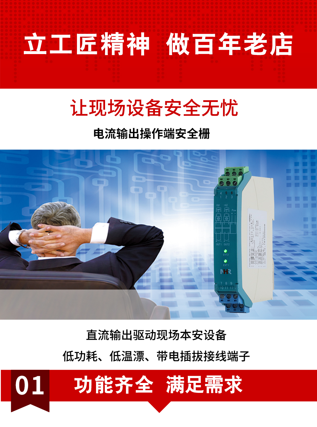 虹潤公司是專業(yè)生產(chǎn)隔離器的國家專精特新“小巨人”企業(yè)。生產(chǎn)的電壓/電流輸出操作端隔離柵涵蓋信號(hào)電壓輸入、電流輸入、開關(guān)量輸入等多種產(chǎn)品類型。產(chǎn)品獲得具備減震抗干擾能力的溫度變送器、信號(hào)隔離器、一種二端子模塊、無源信號(hào)隔離器等4項(xiàng)國家發(fā)明專利,主持起草物聯(lián)網(wǎng)智能溫度儀表、現(xiàn)場設(shè)備工具(FDT)接口規(guī)范、工業(yè)過程測量和控制系統(tǒng)用溫度變送器等3項(xiàng)國家標(biāo)準(zhǔn),以及通信系統(tǒng)多通道數(shù)據(jù)采集控制終端規(guī)范軍用標(biāo)準(zhǔn)。參與國際5G標(biāo)準(zhǔn)制定,取得智能隔離式安全柵等4項(xiàng)相關(guān)軟件著作權(quán)。產(chǎn)品廣泛應(yīng)用于石油、電力、化工,冶金、智能制造、污水處理等諸多行業(yè)。