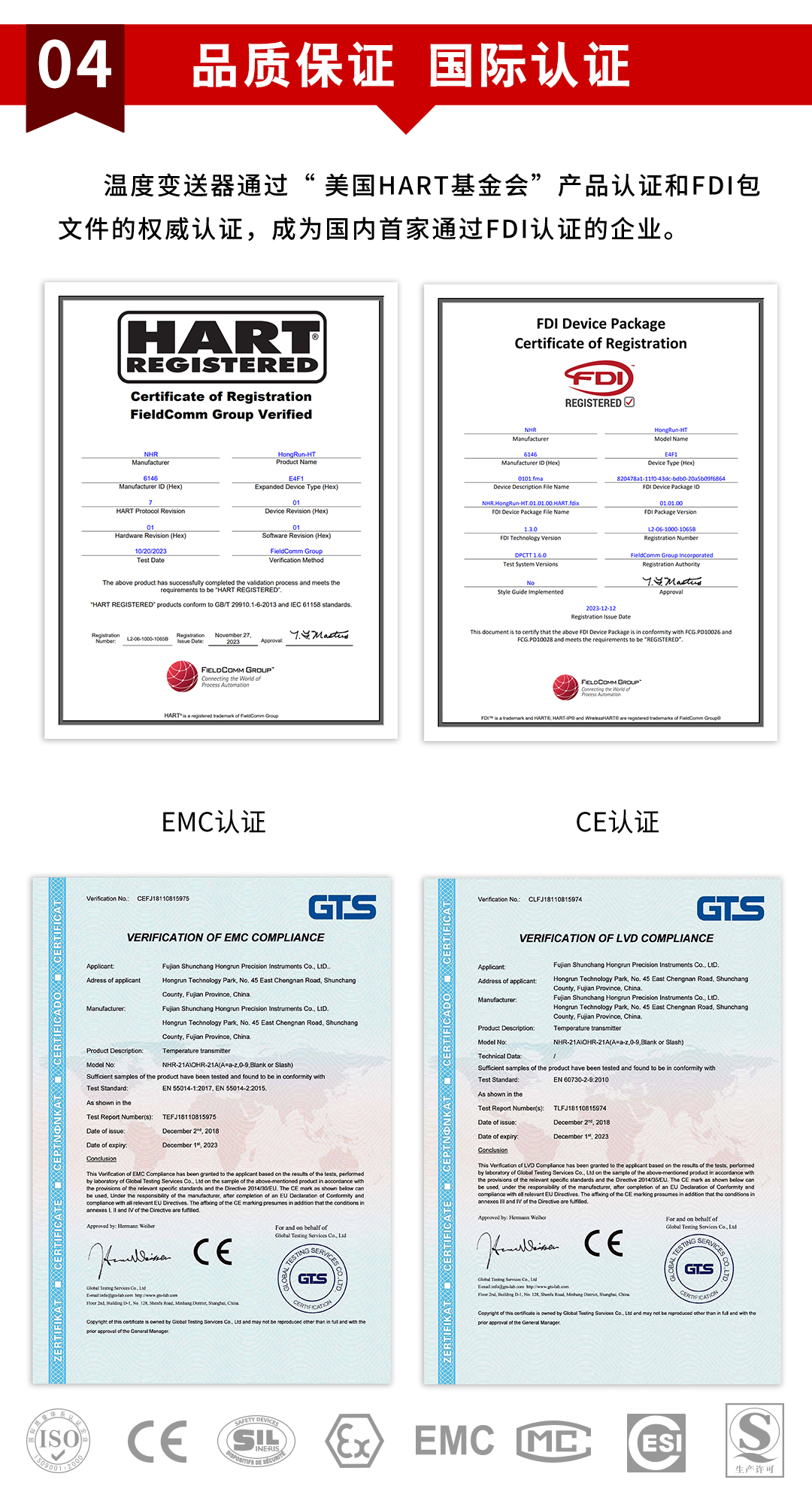 虹潤(rùn)公司是專業(yè)生產(chǎn)溫度變送器的國(guó)家專精特新“小巨人”企業(yè)。生產(chǎn)的LCD 隔離智能溫度變送器,具有熱電阻熱偶信號(hào)全切換輸入,精度高,穩(wěn)定性好,輸入輸出隔離,帶HART或RS485通訊等特點(diǎn)。該產(chǎn)品不僅通過HART基金會(huì)認(rèn)證、德國(guó)萊茵 CE 認(rèn)證與 SIL 功能安全認(rèn)證,還獲得具備減震抗干擾能力的溫度變送器、信號(hào)隔離器、一種二端子模塊、無源信號(hào)隔離器等4項(xiàng)國(guó)家發(fā)明專利,主持起草物聯(lián)網(wǎng)智能溫度儀表、現(xiàn)場(chǎng)設(shè)備工具(FDT)接口規(guī)范、工業(yè)過程測(cè)量和控制系統(tǒng)用溫度變送器等3項(xiàng)國(guó)家標(biāo)準(zhǔn),以及通信系統(tǒng)多通道數(shù)據(jù)采集控制終端規(guī)范軍用標(biāo)準(zhǔn),參與國(guó)際5G標(biāo)準(zhǔn)制定,取得高精度溫度變送器等5項(xiàng)相關(guān)軟件著作權(quán)。產(chǎn)品廣泛應(yīng)用于石油、化工、電力、冶金、制藥、食品、水處理等各種工業(yè)領(lǐng)域。