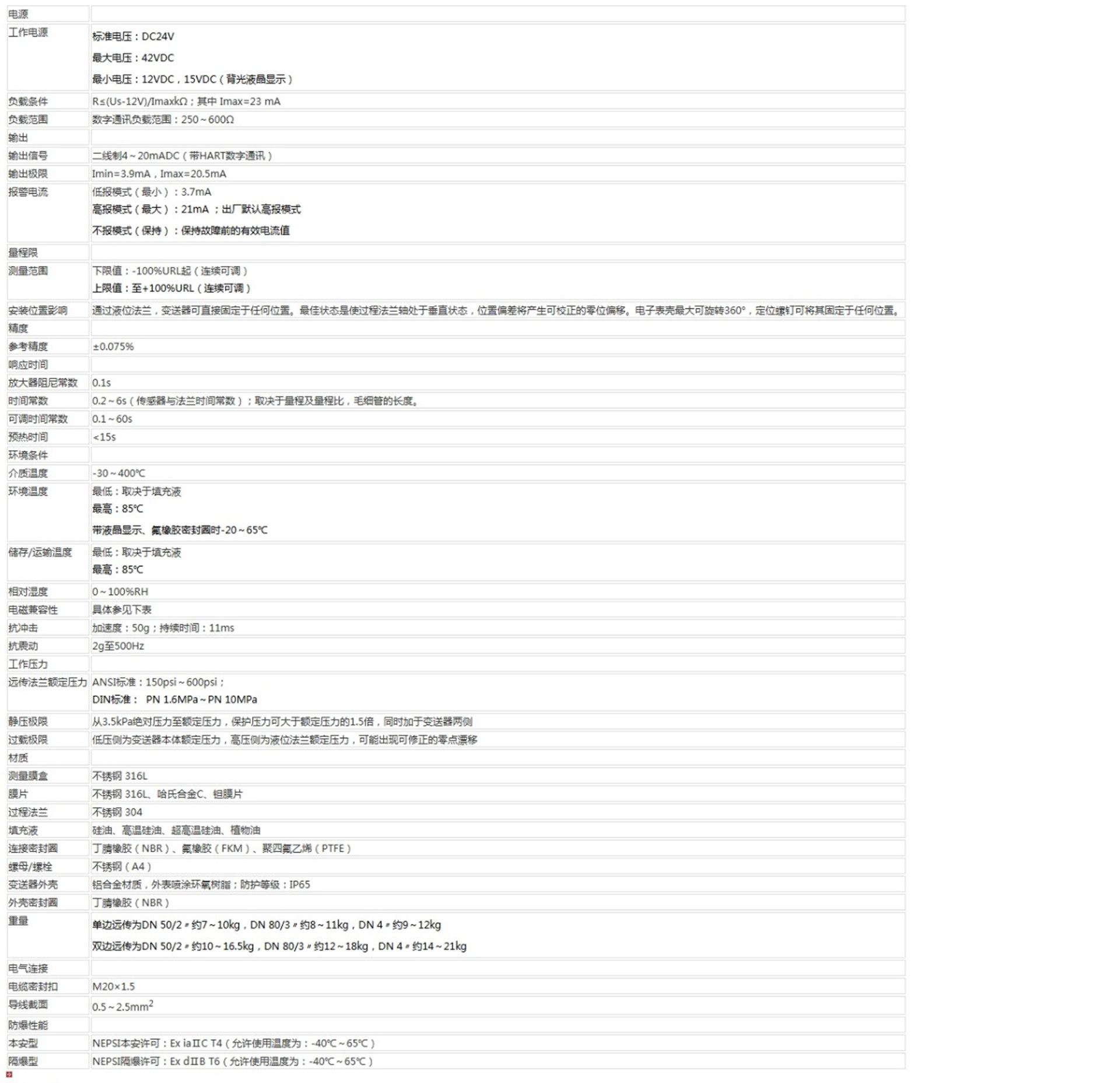 該產(chǎn)品用于測量液體、氣體或蒸汽的液位、密度、壓力,將其轉(zhuǎn)變成4~20mA (HART)電流輸出信號,可通過RST375手持終端對它們進行參數(shù)設定、過程監(jiān)控等。測量范圍(未遷移時)為0-1kPa~2MPa,液位法蘭的額定壓力分別為:1.6/4MPa、6.4MPa、10MPa、150psi、300psi或600psi。